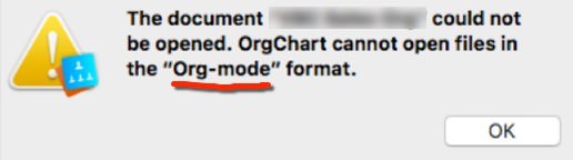 When opening a .org file, if we get an error message like following, please manually change the file extension from "org" to "orgx".